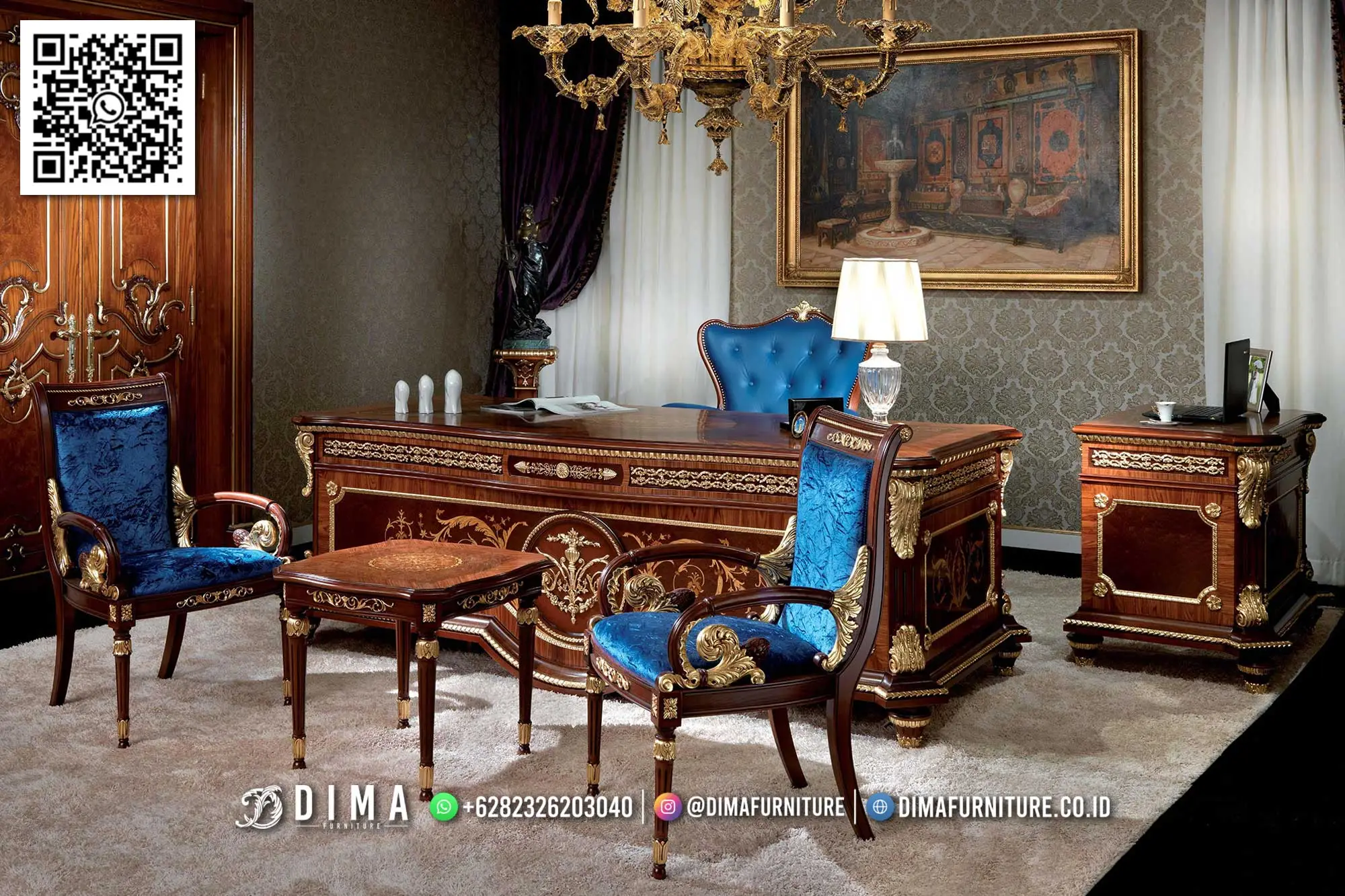 Set meja kantor direktur delux jati ukir eksklusif menghadirkan kesan berwibawa dengan desain klasik mewah, material jati solid, dan detail ukiran jepara elegan.