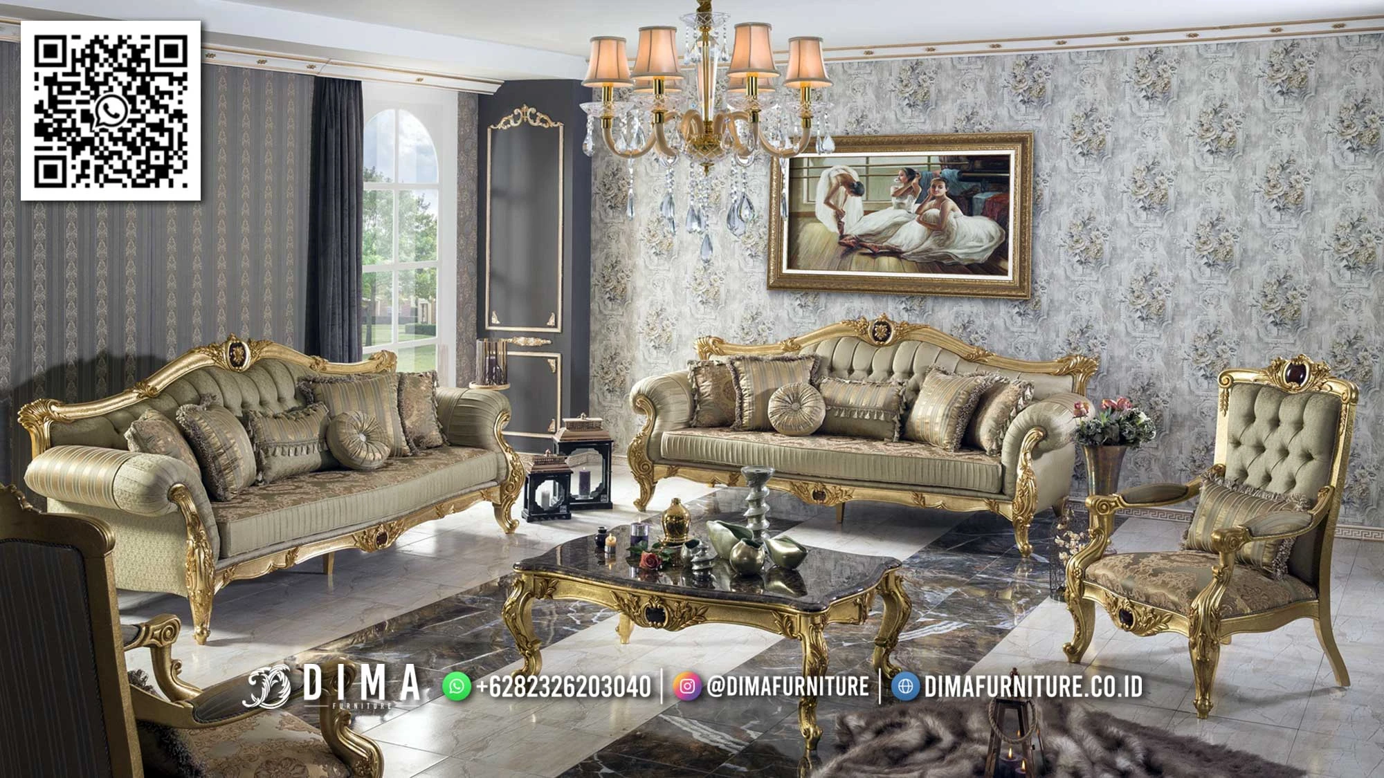 Ukuran set cukup proporsional untuk ruang tamu sedang hingga besar. Dengan perpaduan desain dan material yang seimbang, sofa tamu klasik mewah ini terasa pas untuk penggunaan jangka panjang tanpa terlihat cepat ketinggalan tren.